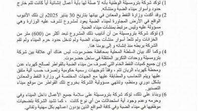 مصدر مسؤول بوزارة النفط والمعادن : العمل بخط انبوب مصفاة حضرموت متوقف منذ أكثر من عامين